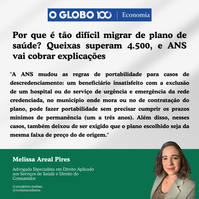 A advogada Melissa Areal Pires, especializada em Direito Aplicado aos Serviços de Saúde e Direito do Consumidor, lembra que, em 2024, a ANS mudou as regras de portabilidade para casos de descredenciamento: um beneficiário insatisfeito com a exclusão de um hospital ou do serviço de urgência e emergência da rede credenciada, no município onde mora ou no de contratação do plano, pode fazer portabilidade sem precisar cumprir os prazos mínimos de permanência (um a três anos). Além disso, nesses casos, também deixou de ser exigido que o plano escolhido seja da mesma faixa de preço do de origem.